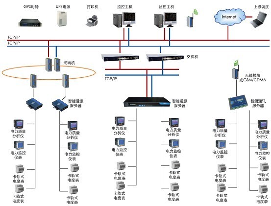 現(xiàn)場工業(yè)儀表通過RS485組網(wǎng),進(jìn)入智能通訊管理機(jī)。主控室研華工控機(jī)安裝OPC軟件及西門子WINCC軟件,用于顯示電壓、電流、電能等用電數(shù)據(jù),WINCC軟件自動(dòng)生成每天用電表報(bào)表并單獨(dú)存儲(chǔ)。